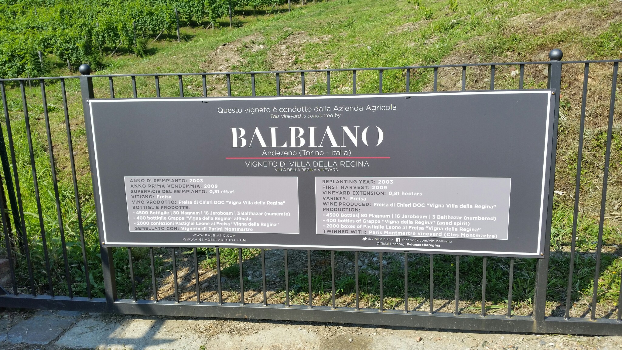 Avvalendosi della preziosa collaborazione del Prof. Gerbi (Università degli Studi di Torino – Facoltà di Agraria) e della Dott.ssa Anna Schneider (CNR – Torino), l’Azienda Balbiano è riuscita nel complesso intento di ridare vita alla Vigna della Regina.