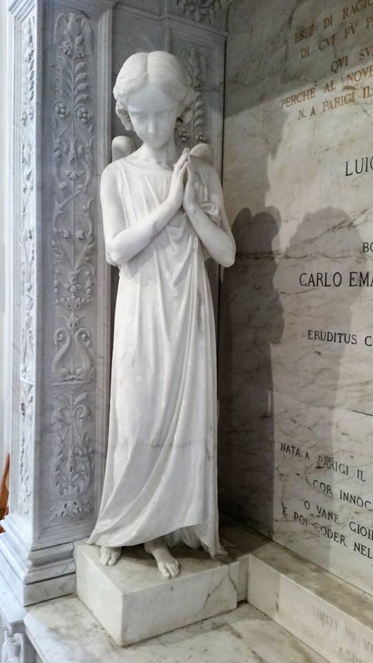Il sepolcreto, sovrastato dallo scudo recante l’arme dei dal Pozzo della Cisterna, che mostra come emblemi il pozzo sorretto da coppie di draghi alati e l’aquila imperiale, colpisce per l’eleganza esecutiva, in stile neo-quattrocentesco secondo il gusto del tempo, e per la bellissima coppia di angeli posti a custodire la tomba, da cui emana “una liricità intensa e partecipe”.