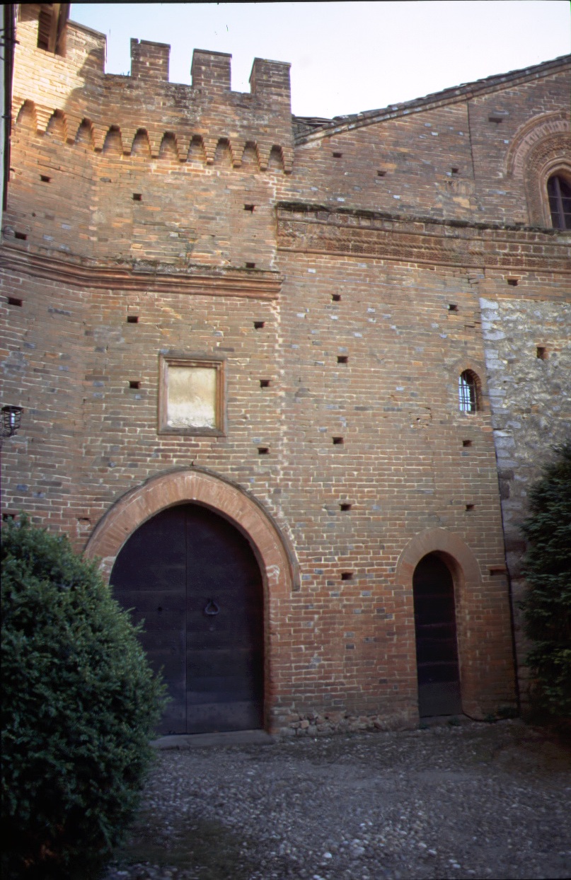 Sebbene sia stato rimaneggiato anche nell’Ottocento, si presenta sostanzialmente medievale all’esterno: gran muraglia di cotto con decorazioni, merlature, finestre e un cortiletto in cima a una salita selciata racchiuso tra fiorite decorazioni. Ospitò il musicista Robert Schumann. L’integrazione del cotto con il verde di compatte siepi di bosso sapientemente disposte, sì da creare eleganti e profonde prospettive, dalle quali emergono la bella parrocchiale e i tetti del paese, donano a questo paese una rara armonia e perfezione estetica.