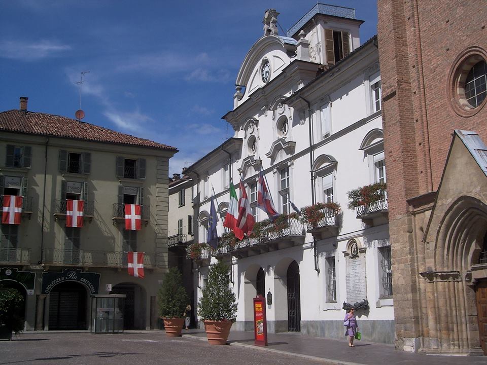 Accanto alla Collegiata di San Secondo spicca per contrasto stilistico il prospetto tardo-barocco del Palazzo Comunale, opera di Benedetto Alfieri, che riplasmò un edificio già esistente, segno tangibile di quel vasto rinnovamento architettonico che investì la città nel Settecento, quando si mise mano ad una serie di interventi edilizi che, pur non incidendo sull’impianto medioevale della città, ne rinnovarono il volto secondo il gusto del tempo.