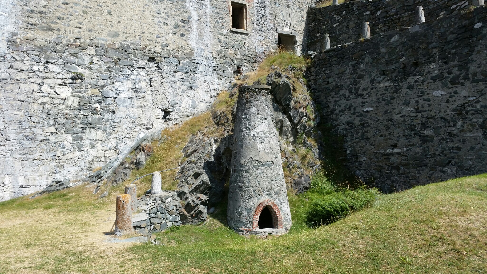 Superata anche la polveriera il viaggio continua e possiamo notare come il forte per motivi militari, logistici e tattici, abbia una duplice linea di collegamento per tutta la fortezza: una esterna, la Strada Reale e una interna, la scala al coperto. Continuando la nostra salita si vedono i famosi Risalti, termine con cui si indicavano le piazzole per l’artiglieria poste sopra le mura della fortezza e che formano dei veri e propri gradoni..